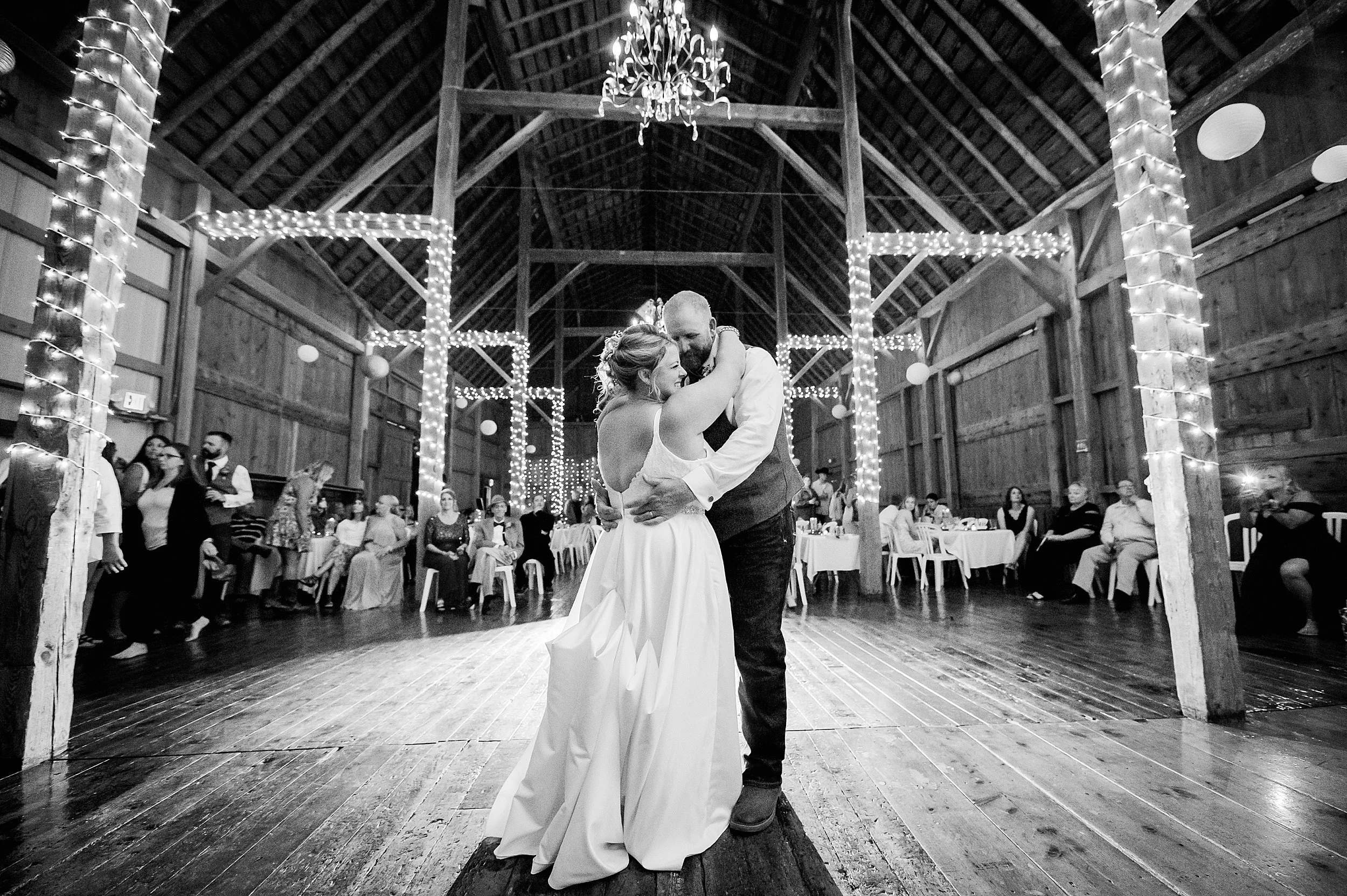 Sugar Island Barn made a perfect location for both their ceremony and reception, and our photographer Lisa had a wonderful time photographing their day and taking their portraits around the grounds! We particularly love their flower petal recessional and their sparkler exit later that evening ✨
